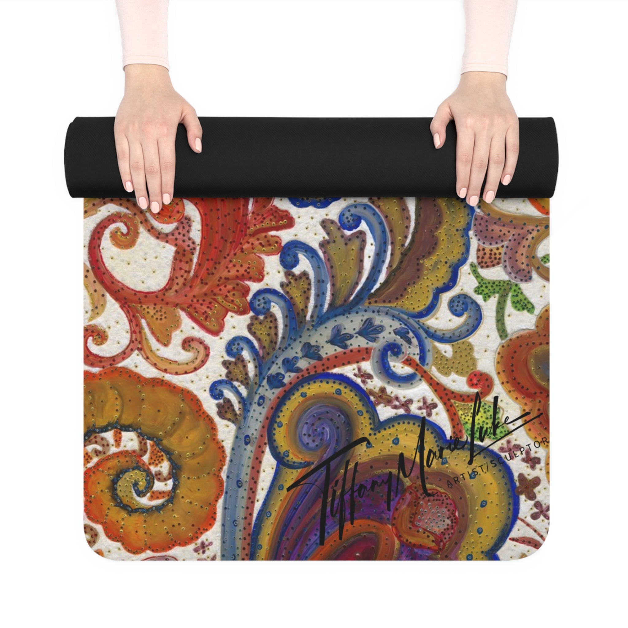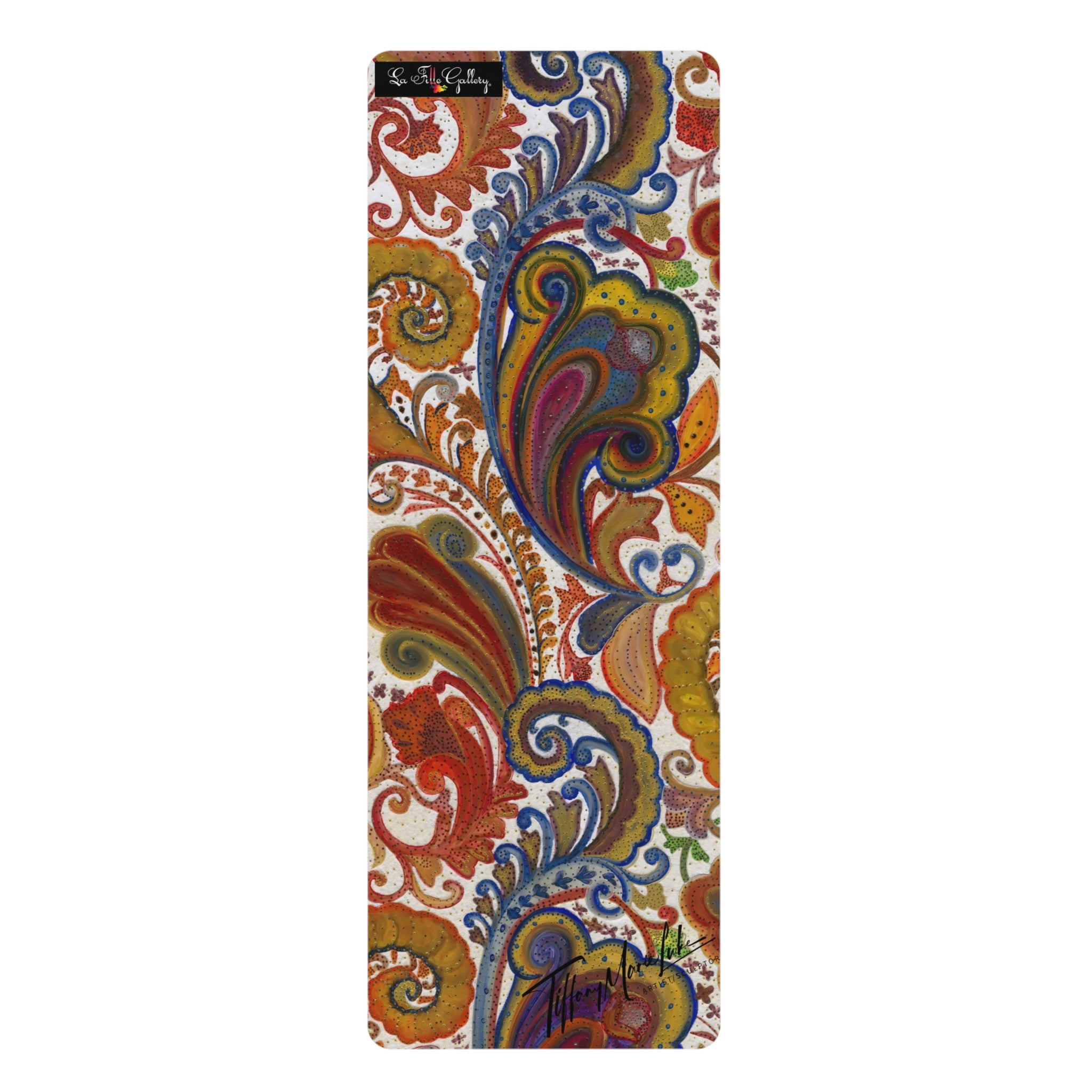 Elevate your yoga practice with the LaFille Gallery "Bali" Yoga Mat featuring a print of original art by Tiffany Marie Luke. This lightweight and anti-slip mat with a microfiber suede top and natural rubber bottom offers comfort and stability during your practice. Perfect for yoga enthusiasts looking to add a touch of art to their routine, this mat is ideal for anyone celebrating International Yoga Day or looking for a thoughtful gift for a yoga lover.