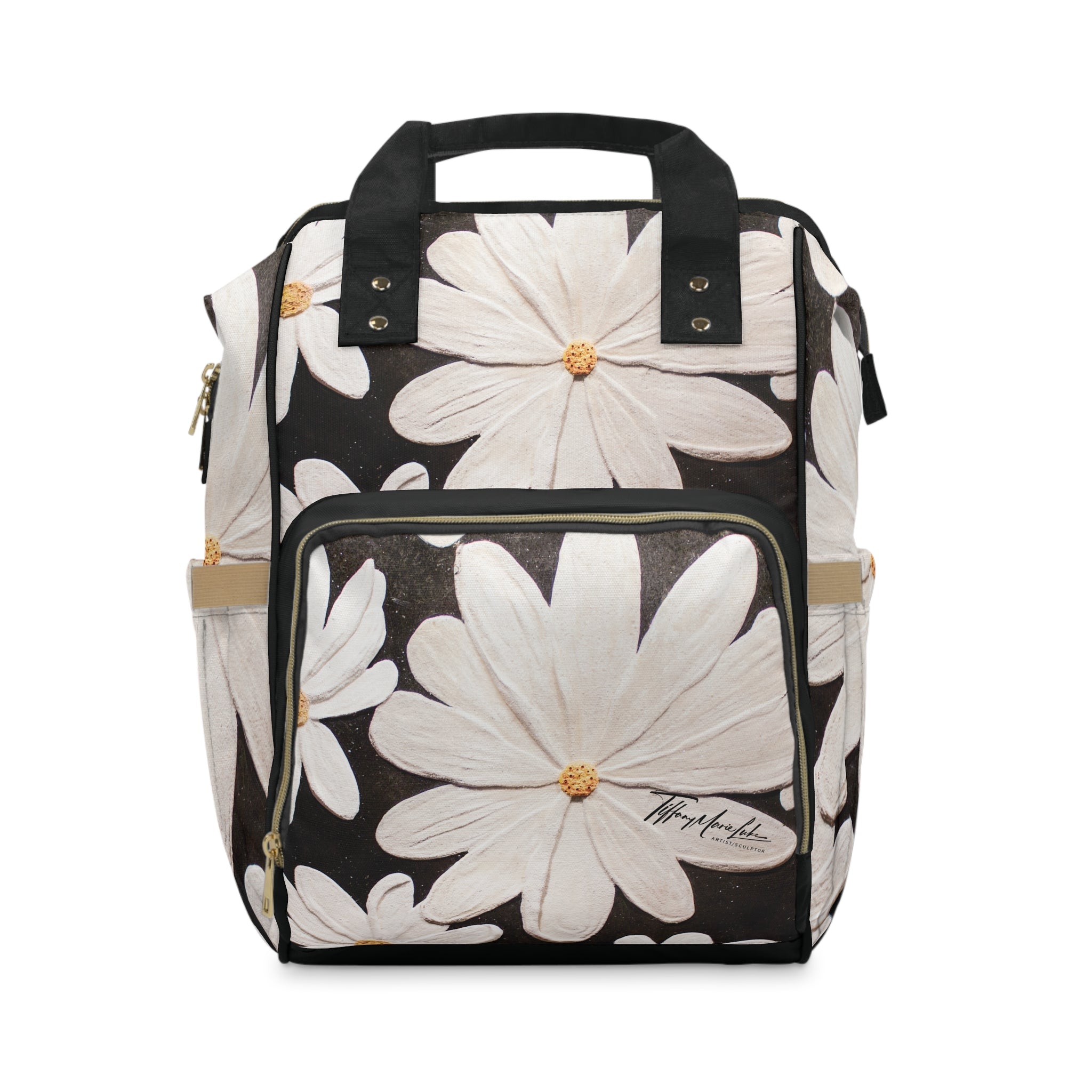 The Daisy Diaper Backpack by La Fille Gallery is a vibrant and functional accessory created and designed by artist/sculptor Tiffany Marie Luke. Made from tear-resistant and breathable 1200D nylon material, this Backpack features a spacious main compartment, multiple pockets for convenient storage, adjustable shoulder straps for comfort, and a padded back panel. The bright r and crisp colors make it perfect for parents on-the-go who want to stay organized in style. Ideal for moms and dads looking for a fashionable and practical diaper bag, this Backpack is perfect for baby showers, birthdays, and everyday outings.